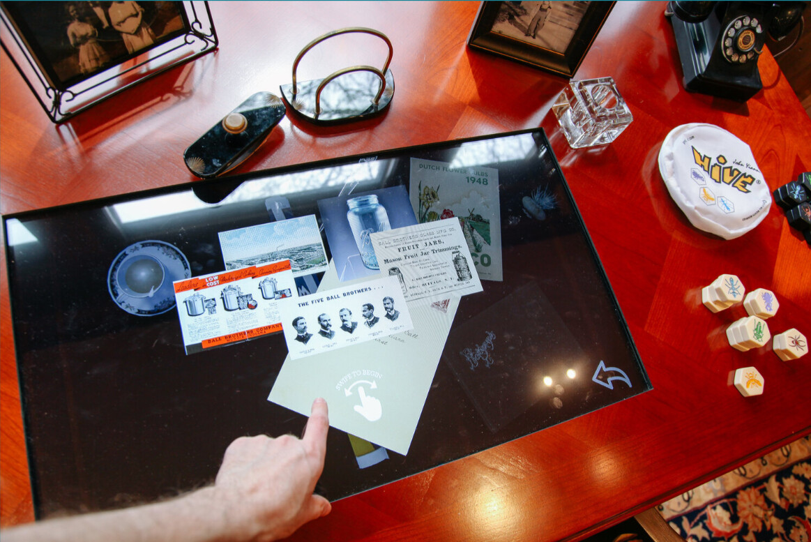 This interactive experience is embedded into an antique desk at the Minnetrista Museum in Muncie, Indiana. Designed to highlight the hobbies and history of the Ball family—the creators of the iconic Ball glass jar—the experience featured multiple interactive elements, including a digital guestbook, family photo album, and games. Together, these components invited visitors to connect with the Ball family’s story in a playful, personal way.
